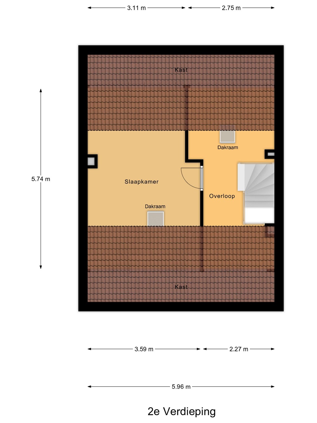 Via een vaste trap bereikbare voorzolder met dakraam en opstelplaats voor de HR-ketel. Aansluitend een zolderkamer, eveneens voorzien van een dakraam.