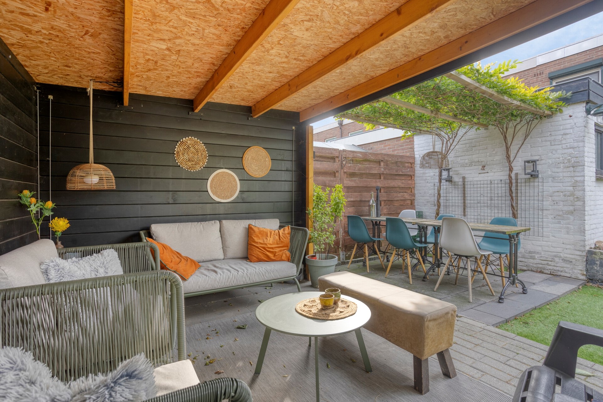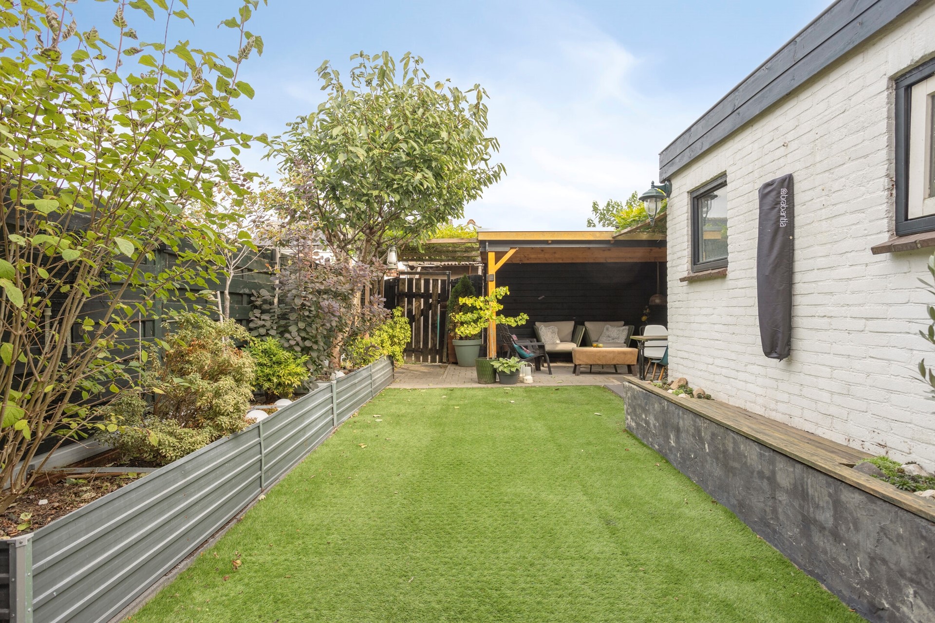Binnen vind je een lichte woonkamer met een open sfeer. De badkamer op de verdieping is modern uitgevoerd met een tweede toilet, een inloopdouche en een wastafelmeubel. De achtertuin is een absolute blikvanger. Onder de sfeervolle veranda is het heerlijk vertoeven tot in de late uurtjes. In de tuin staat een handige berging voor al je tuinspullen en fietsen.