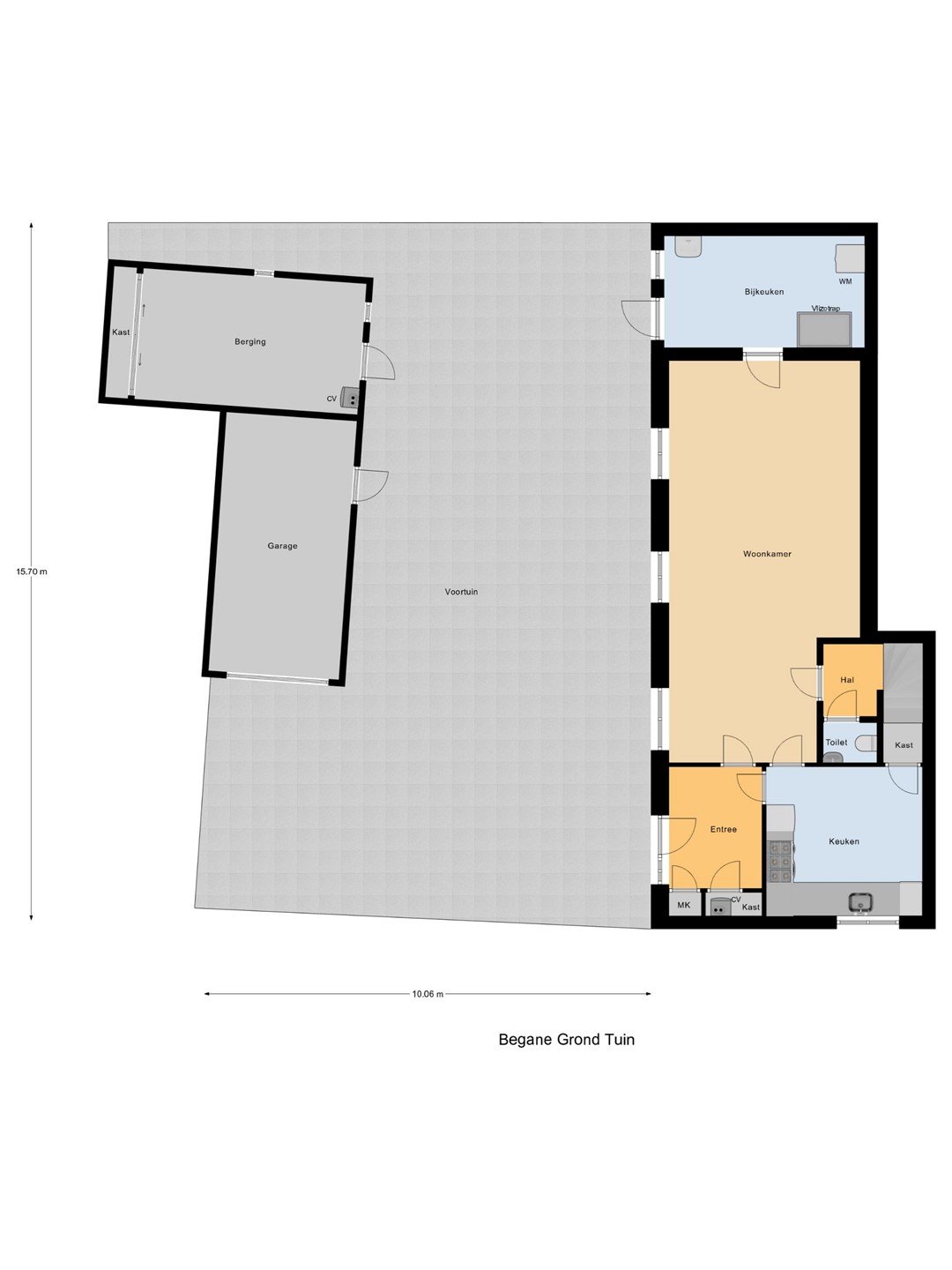 Als je binnenkomt via de hal, vind je de vernieuwde meterkast en de cv-ruimte. De begane grond heeft een lichte en smaakvol ingerichte woonkamer en een moderne woonkeuken. Vanuit de woonkamer heb je toegang tot de wasruimte, die ook een deur naar de tuin heeft en via een trap leidt naar een extra zolderkamer. Daarnaast is er een portaal met toilet en de trap naar de eerste verdieping.