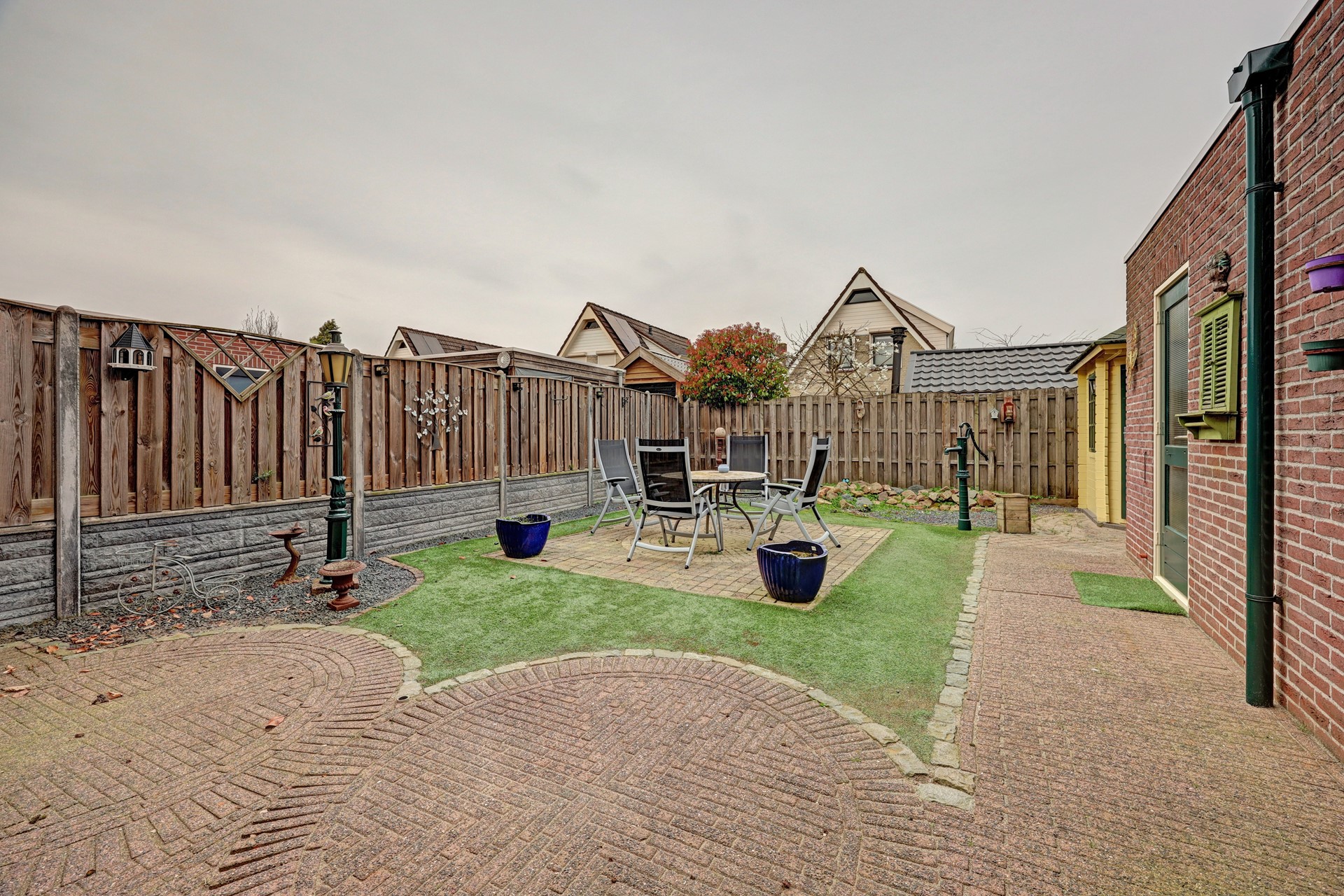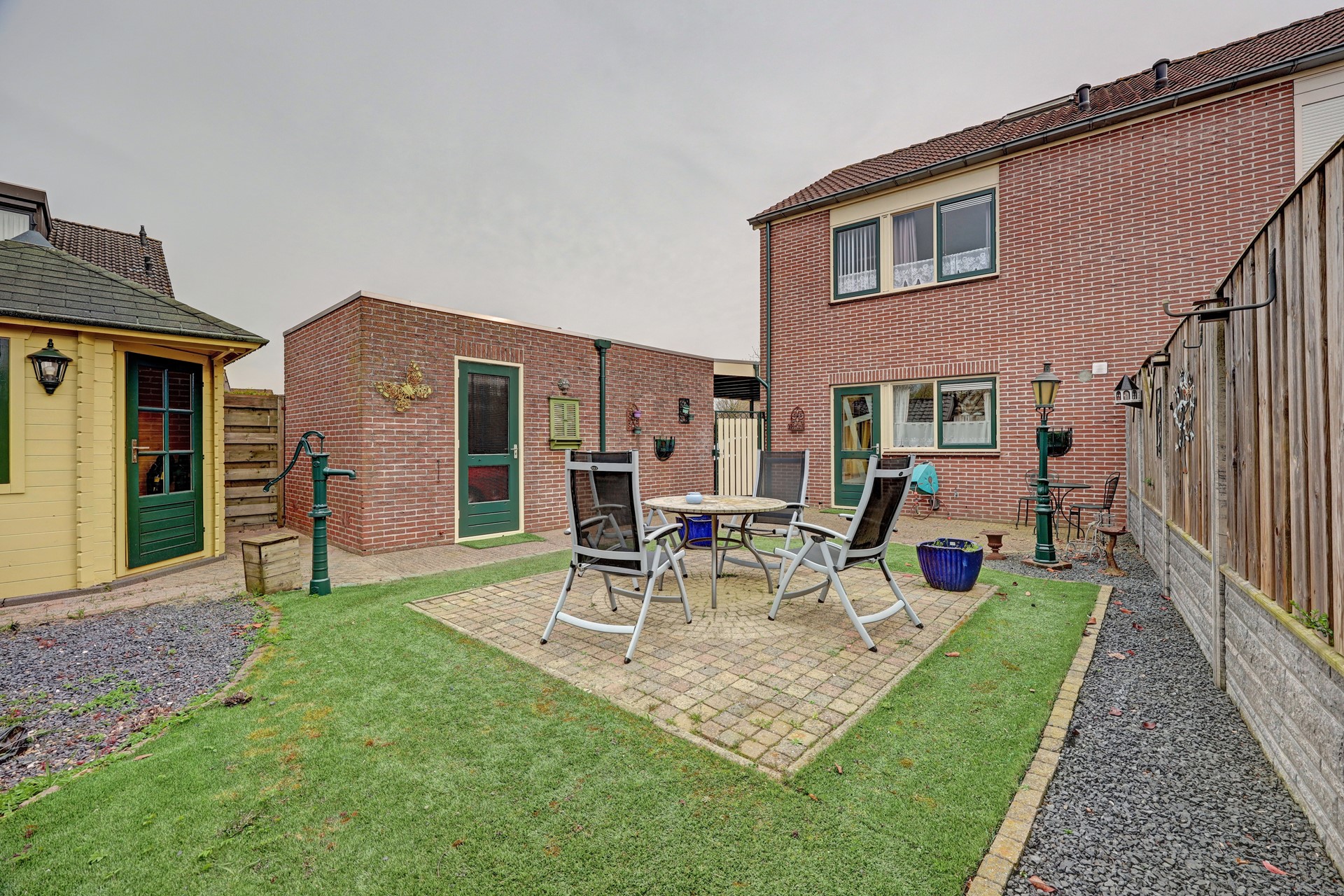 De woning staat op een verzorgd perceel van ca. 269 m². De ruime oprit biedt plaats aan meerdere auto's en leidt naar de vrijstaande garage. Achter in de tuin staat een houten tuinhuisje, perfect voor het opbergen van tuingereedschap of als hobbyruimte.