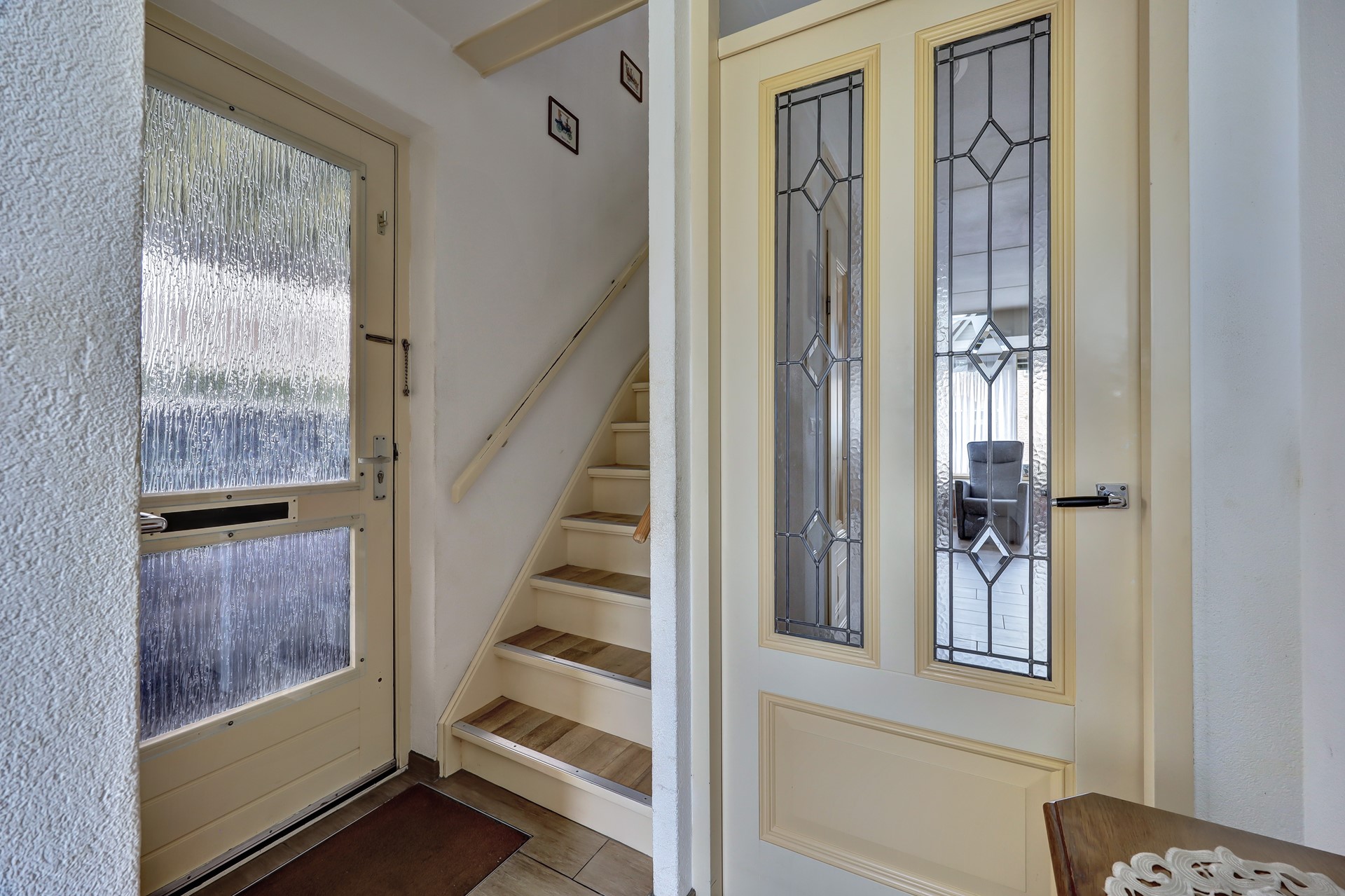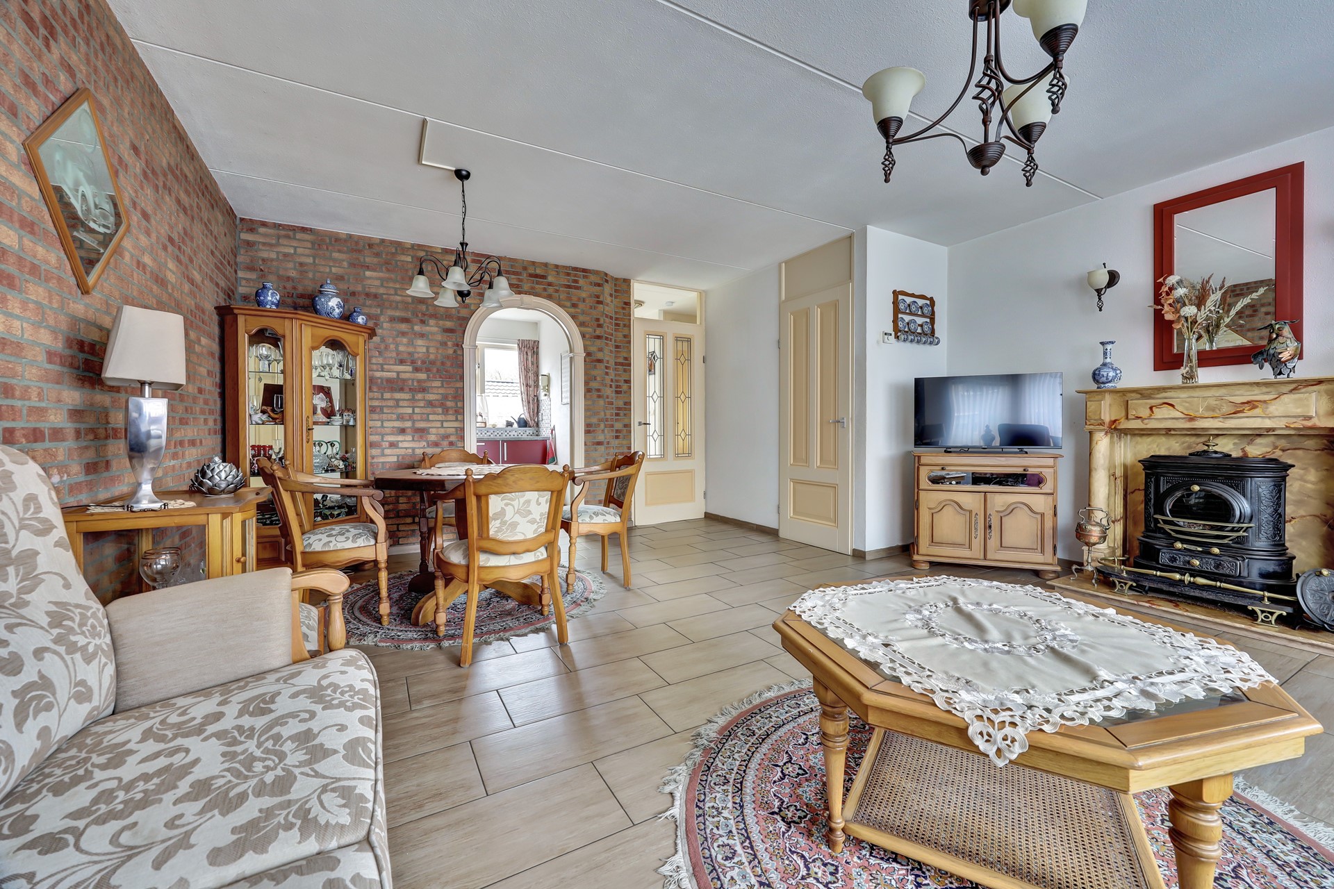 U komt droog binnen via de entree onder de carport. De hal met meterkast en toilet geeft toegang tot de sfeervolle woonkamer met trapkast. Aan de voorzijde geniet u van extra lichtinval en een ruimtelijk gevoel door de later aangebouwde erker. De half-open keuken staat in directe verbinding met het leefgedeelte.