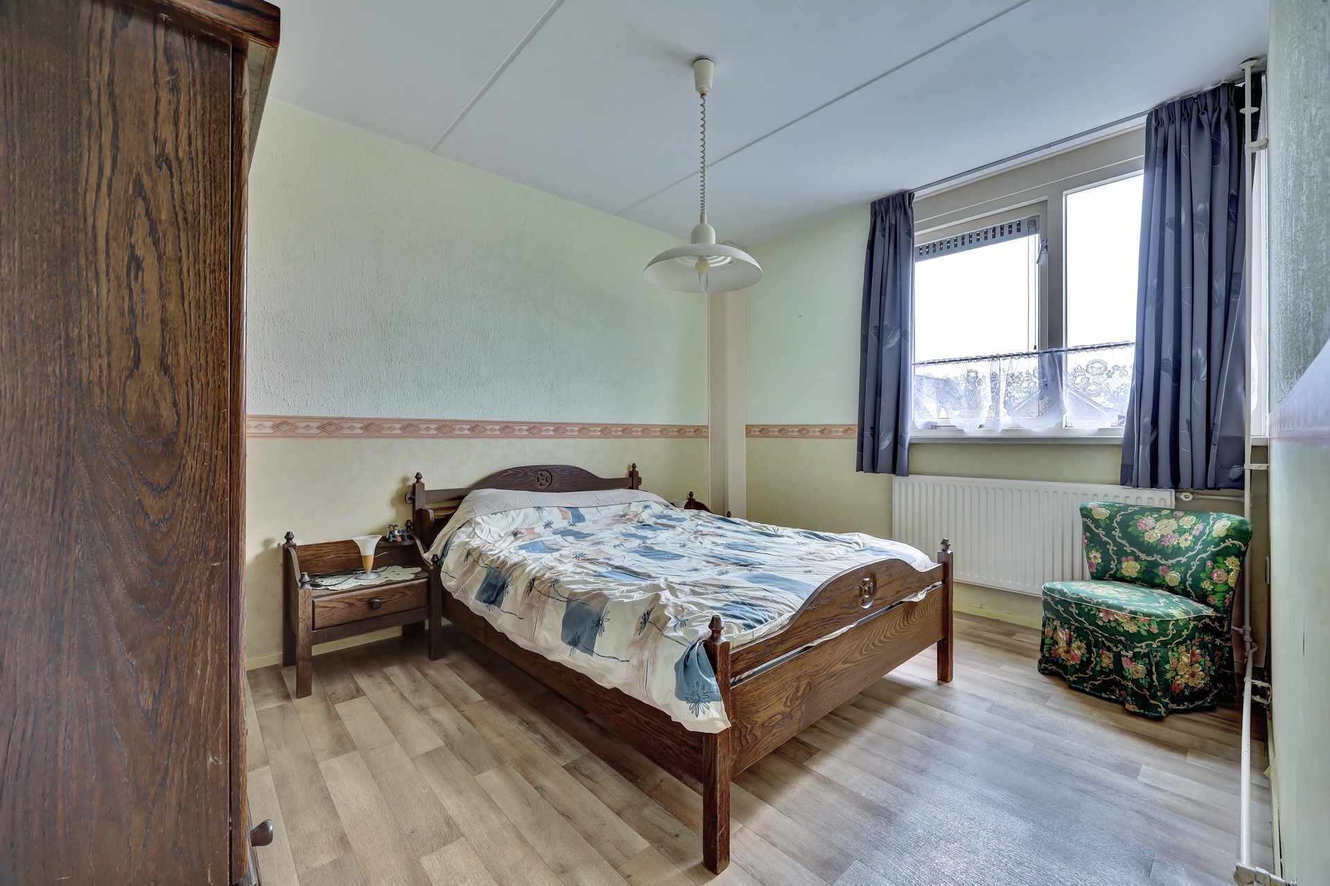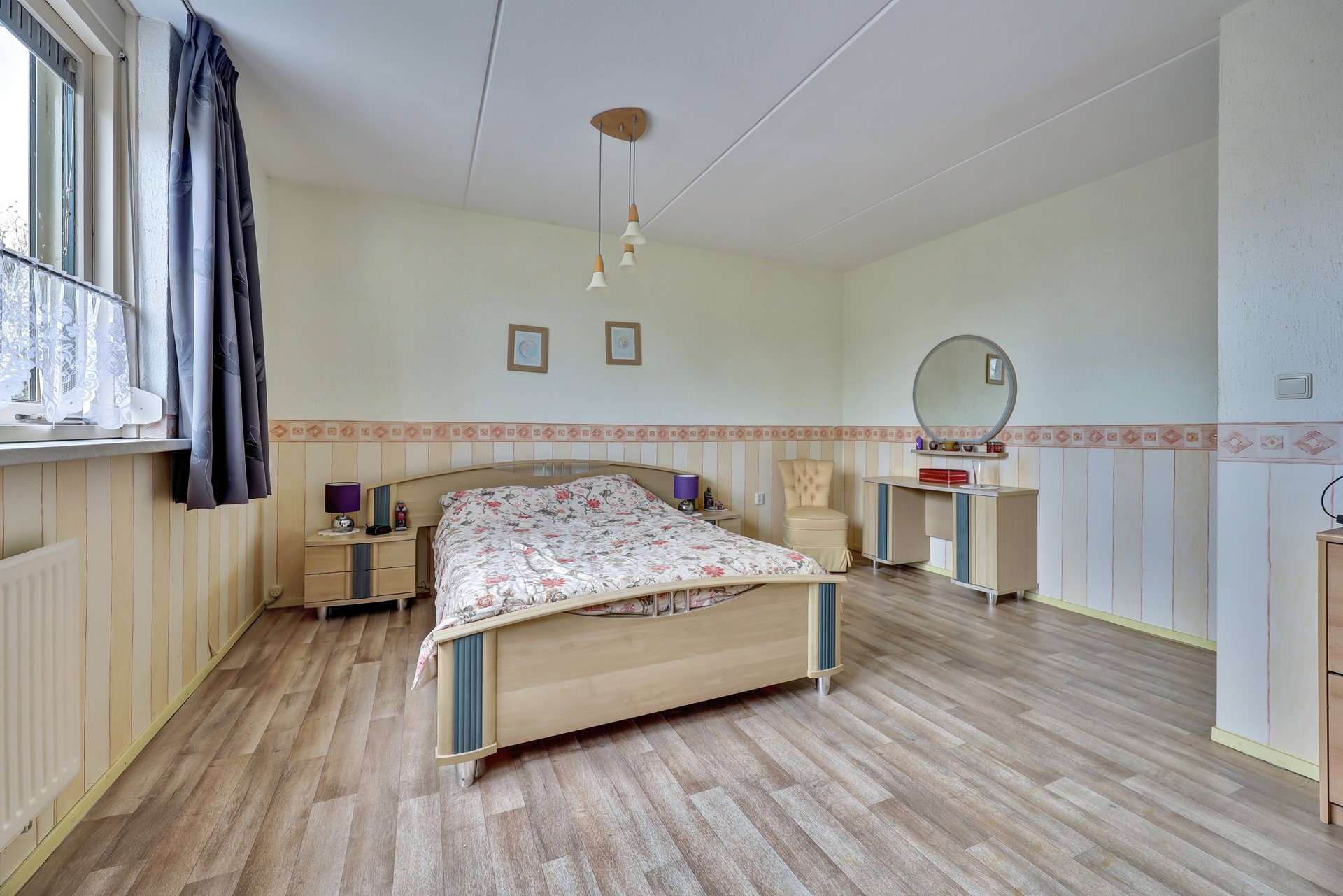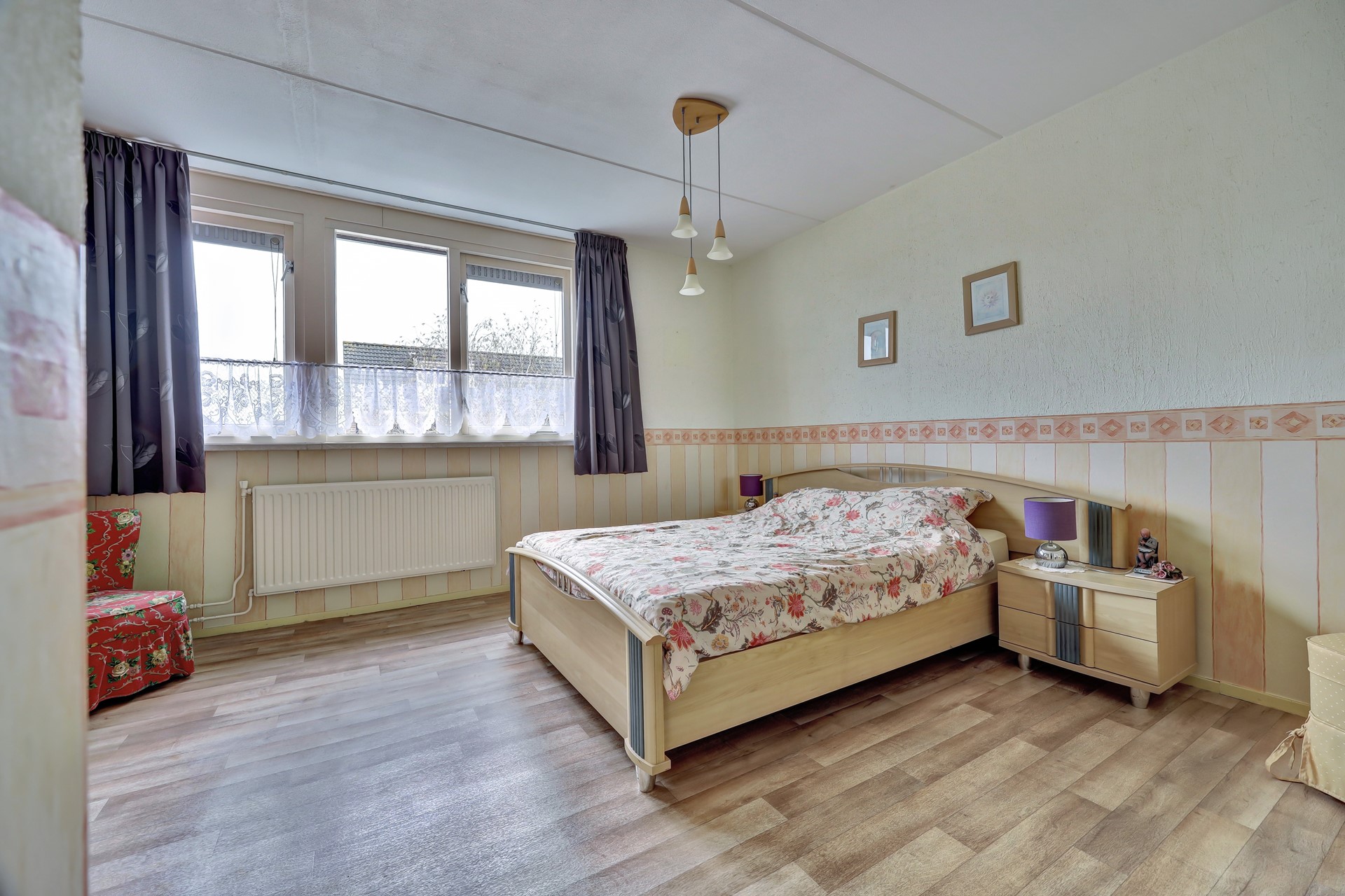De overloop leidt naar de slaapvertrekken en de badkamer. Aan de voorzijde bevindt zich een zeer ruime slaapkamer over de volle breedte van de woning. Daarnaast is er een tweede goed bemeten slaapkamer en een ruime, ingerichte badkamer.