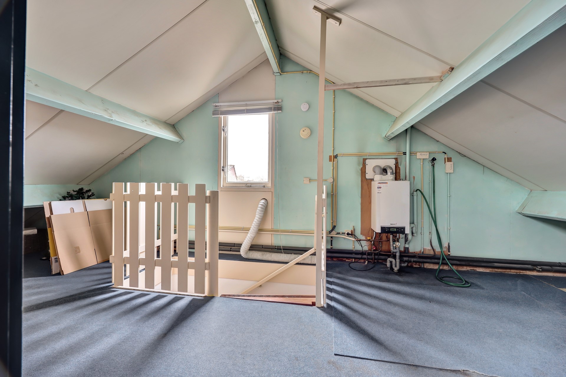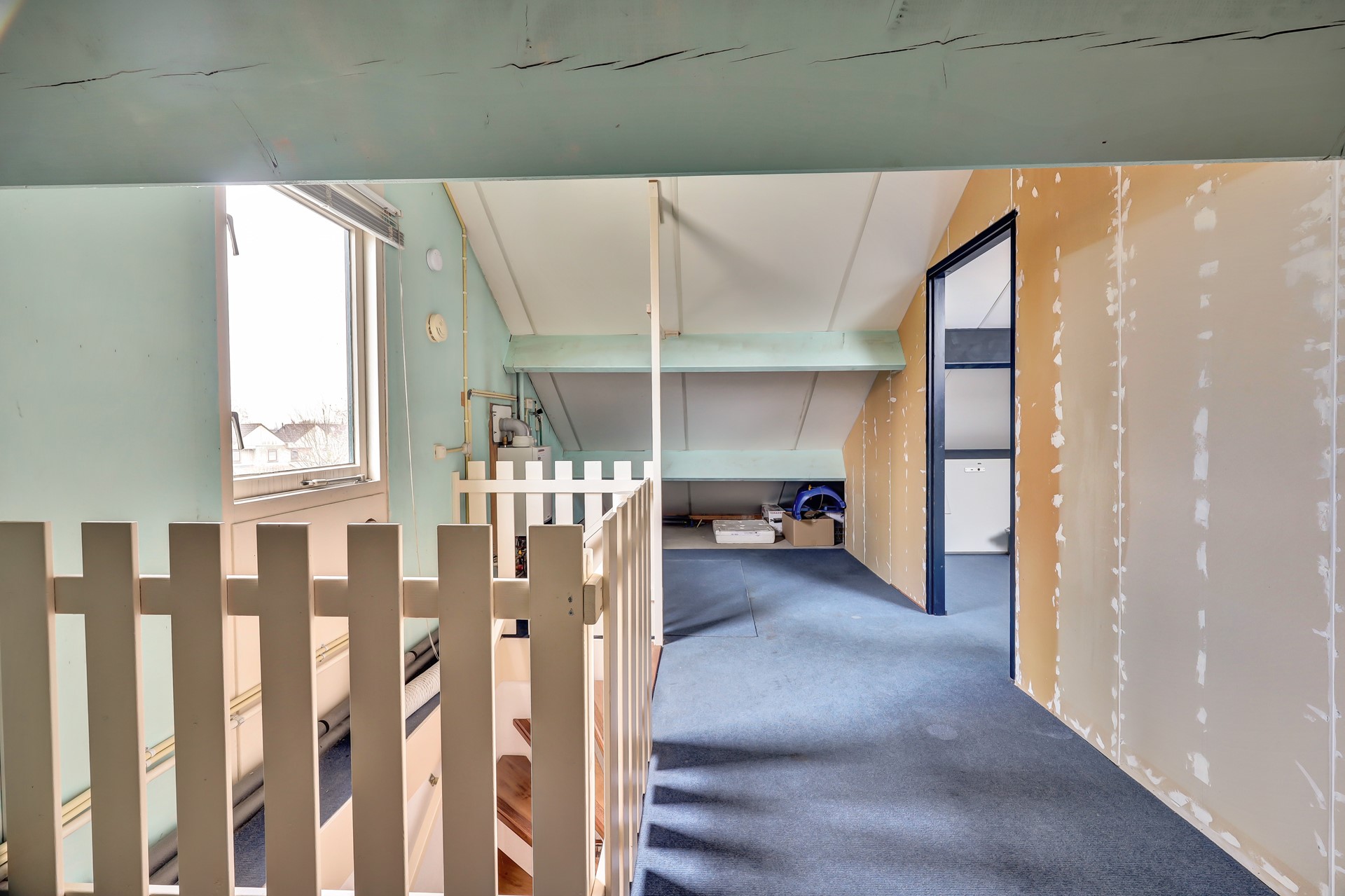 Bereikbaar via een vaste trap. De voorzolder biedt plaats aan de CV-combi ketel en witgoedopstelling. Hier bevindt zich tevens de derde slaapkamer, een ideale plek voor een rustige werkruimte of een extra slaapkamer.
