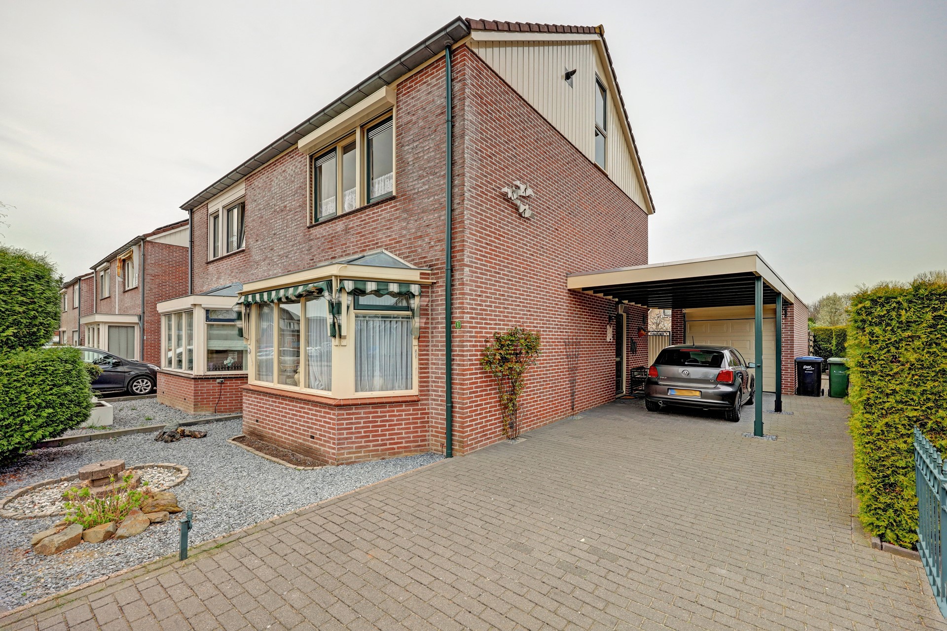 - Bouwjaar: 1992, wat staat voor degelijke bouw en goede basisisolatie vanuit de bouw. - Parkeren: Royale oprit met carport en een vrijstaande stenen garage (totaal 22 m² extern). - Comfort: De woning is gedeeltelijk voorzien van rolluiken, ideaal voor privacy, veiligheid en temperatuurregulatie. - Licht & Ruimte: De erker aan de voorzijde geeft de woning een eigen gezicht en een prettige lichtinval. - Locatie: Gelegen in een verkeersluwe, gewilde buurt met alle voorzieningen binnen handbereik.
