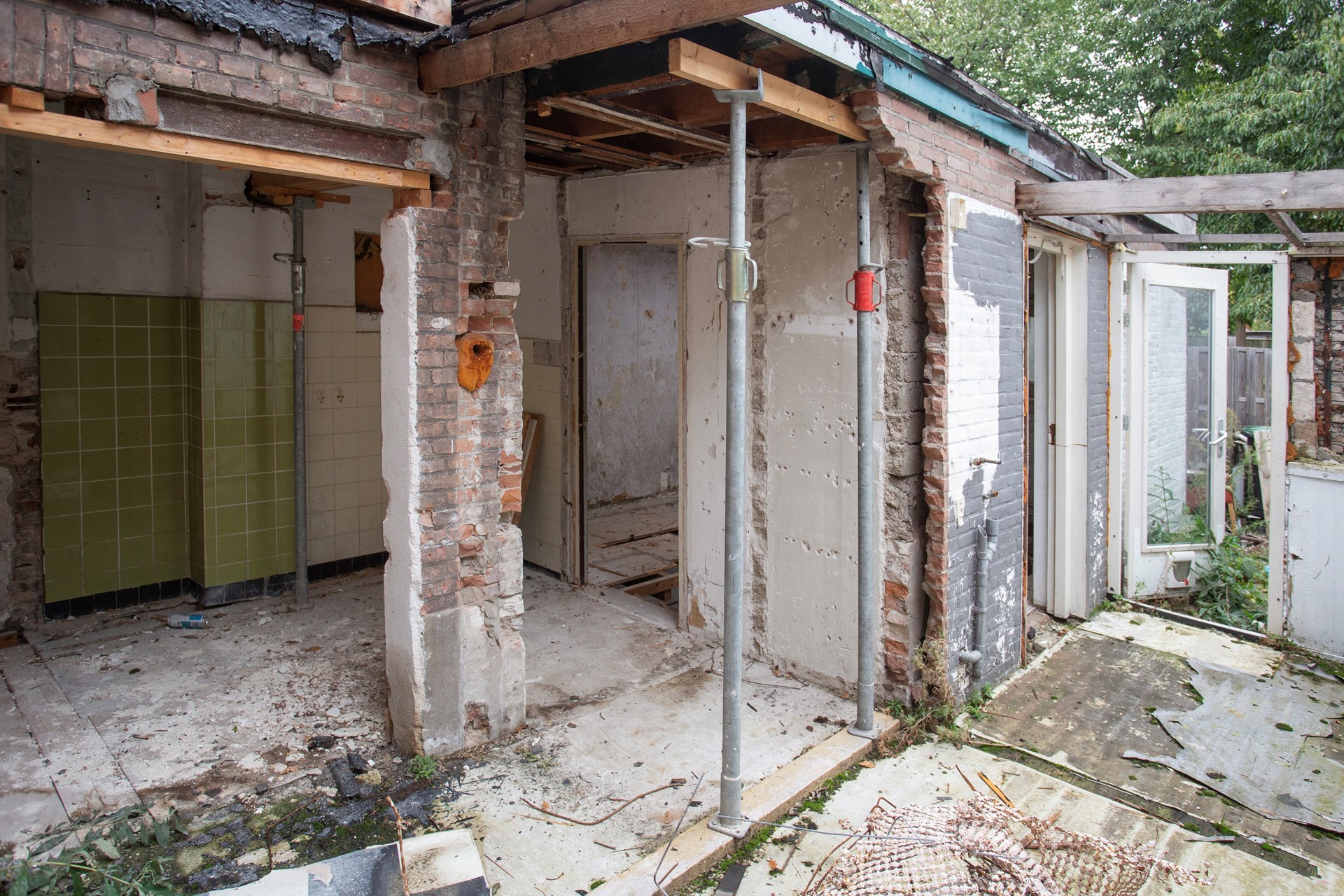 Op dit moment is de woning gestript, zijn er wat buitenmuren weg en is de woning een casco waar je mee aan de slag kunt!