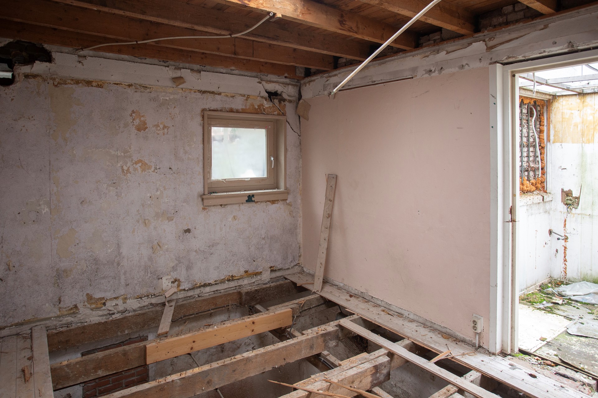 Deze benedenwoning is tot op het bot gestript en vraagt om een totale renovatie, van de begane grond tot de plafonds en alles daartussenin. Het mooie daaraan? De mogelijkheden zijn eindeloos. Je hoeft hier geen rekening te houden met lastige indelingen of ouderwetse badkamers; alles is al opengebroken. Hier kun je echt vanaf het eerste muurtje tot het laatste stopcontact alles naar eigen wens aanpakken. De woning wordt geleverd in de staat waarin deze nu verkeerd. "As is where is": de verkoper doet afstand van verklaringen/garanties en risico's.